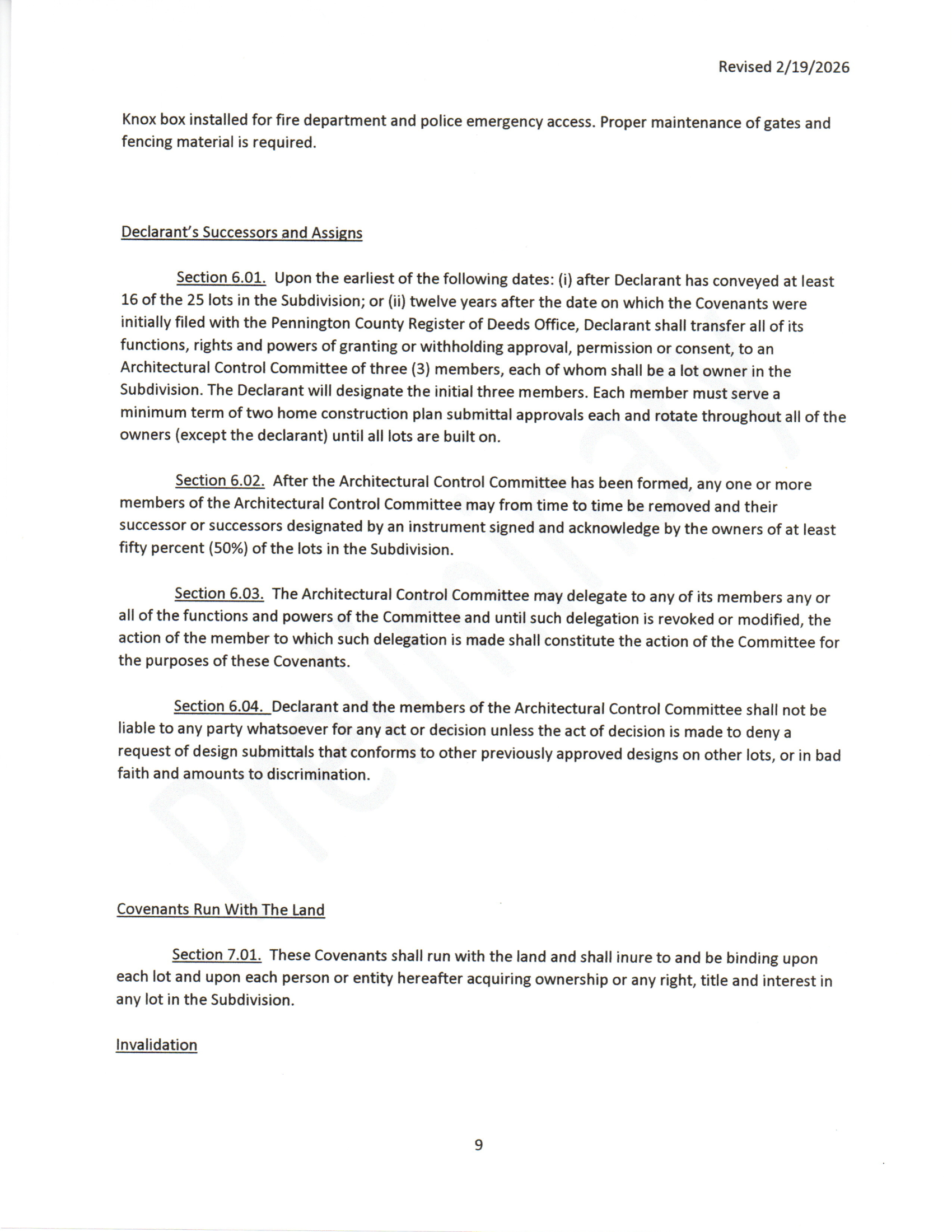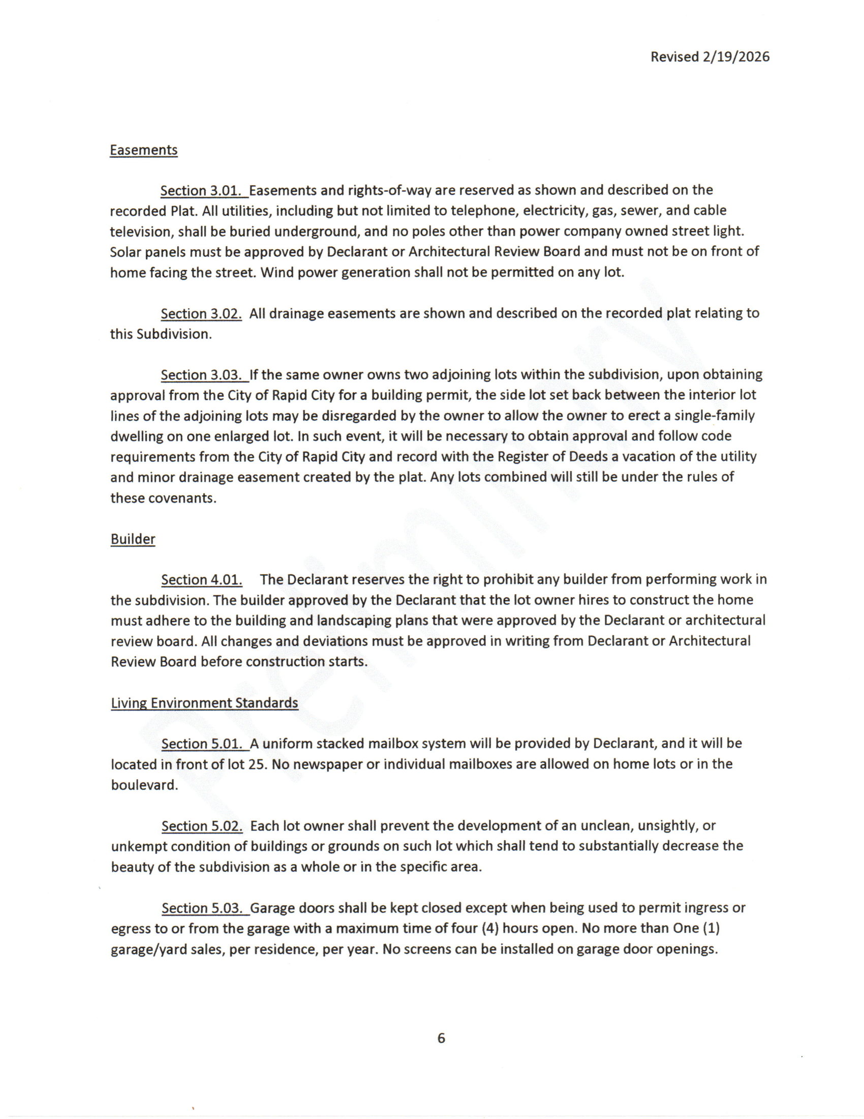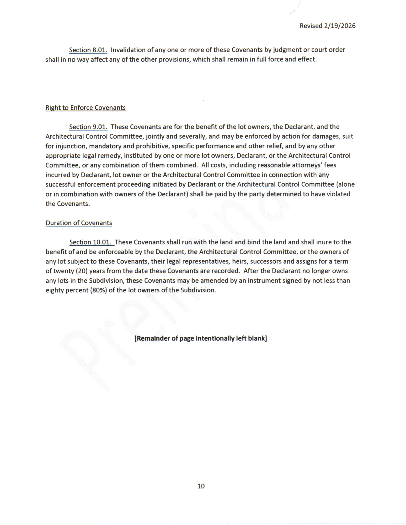 The above covenants are preliminary and subject to change before the final plat is registered (approx. 5/15/2026).
